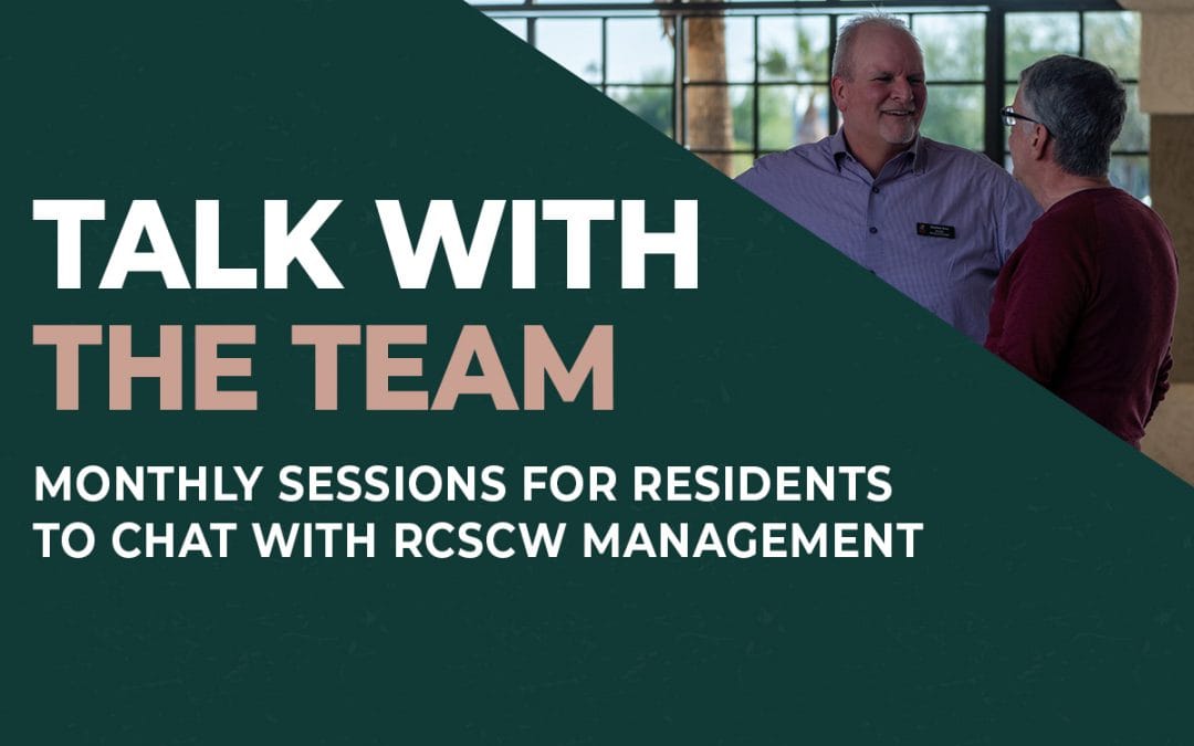[Sun City West] Another Talk with the Team session with RSCSW Management will be held on Monday, August 25th at 830-930am in the Village Meeting Room.