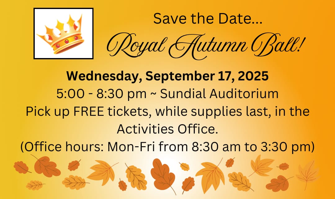 [Sun City] Save the Date for the Sun City Royal Autumn Ball, to be held on Wednesday, September 17, 2025 at the Sundial Auditorium.