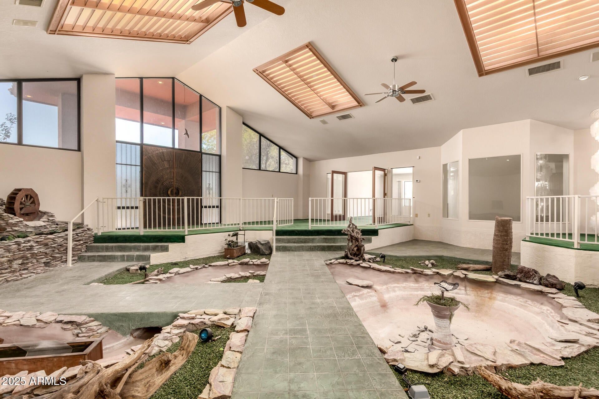 On a lot of just over an acre, the home has 4,835 square feet and some interesting interior design features, including a one of a kind entry atrium. You also get a cool free-standing greenhouse.