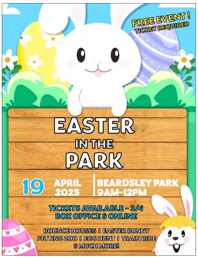 [Sun City West] Easter in the Park will be held on Saturday, April 19th at Beardsley Park. Tickets are free but each child must have one. (link)