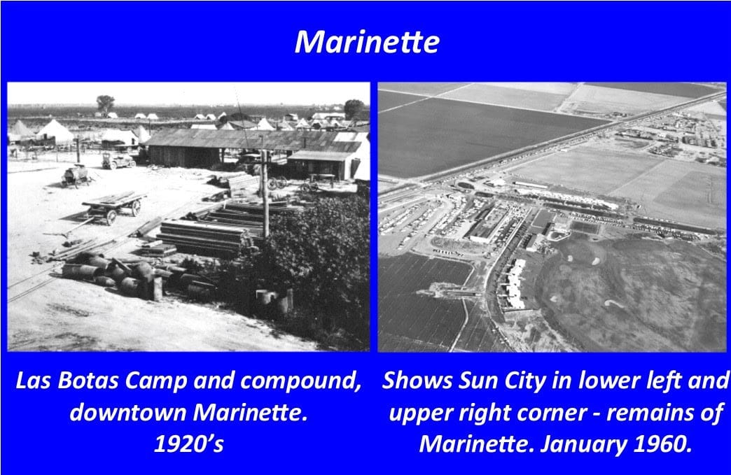 The history of Marinette can today be found at the Del Webb Sun Cities Museum, 10801 W. Oakmont Drive, and at our website.