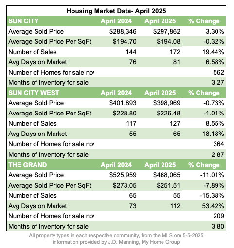 Sun City & Sun City West saw an increase in the number of sales in April, compared to 2023, but The Grand saw lower sales than the year before.