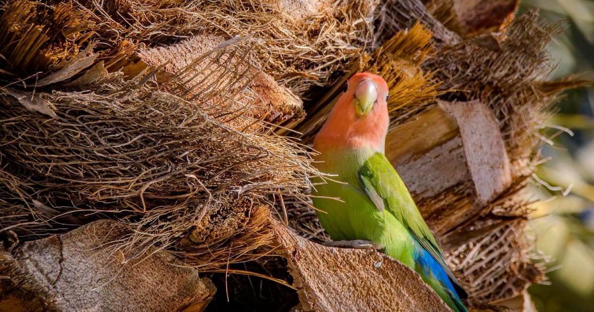These colorful birds are not native to Arizona. Wildlife experts believe today’s flocks descend from pet lovebirds that escaped or were released several decades ago. Instead of disappearing, they adapted surprisingly well to the desert, finding food, water, and nesting spots in urban landscapes filled with palm trees, irrigated yards, and canals.
